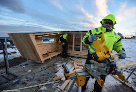 Birding architecture is one of Biotopes core endevours. At Vardø islands northeasternmost point, Hasselnes, a new bird hide / wind shelter was finalized for Gullfest 2015. In the frosty arctic winds nothing improves your birdng like a well placed shelter. From this new hide you have spectacular views of the very bird rich Reinøysundet and Hornøya bird cliff. This is part of a project we run in collaboration with a series of people and businesses in Varanger, with the aim of promoting one of Varangers finest attractions, the Hornøya bird cliff. This bird hide project was made possible with the financial help from Miljødirektoratet and help from Vardø kommune, Finnmark Entreprenør and Vardø Næringsforening. Designed by Biotope and built by Vardø carpenter Ken Lorentzen and Alonza from the Biotope office in the days leading up to Gullfest.